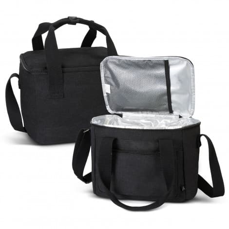 Designed for everyday, the ARCHER Copenhagen Cooler Bag pairs modern function with vintage-inspired style. Crafted from durable 450gsm washed canvas, it's finished with matte PU accents and brushed metal fittings. The spacious 14L main compartment is lined with aluminium foil to maintain temperature, making it perfect for lunches, picnics, or day trips. An external zippered pocket offers extra storage for small essentials. Woven carry handles and an adjustable shoulder strap ensure easy, comfortable carrying. Presented with an ARCHER branded hangtag.