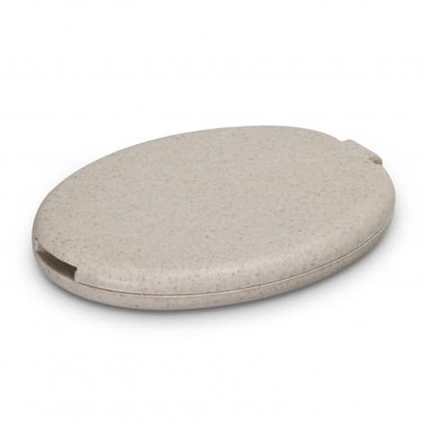 Practical sewing kit manufactured from AS + Wheat straw, containing four different thread colours and a needle. It features a needle threader, safety pin, spare button, and a mirror.